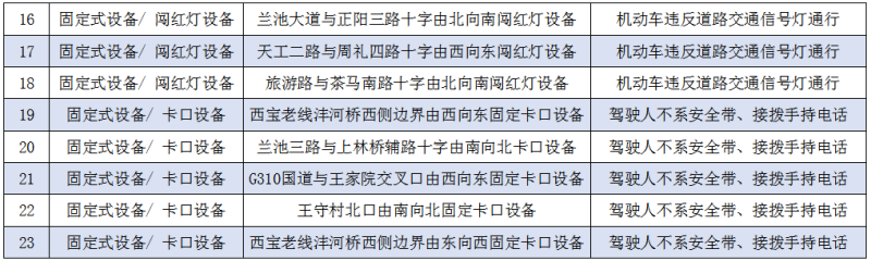 凡在上述点位,有驾驶机动车违反道路交通信号通行、违反禁止标线指示、逆向行驶、不按导向车道行驶、柴油货车违反禁令标志驶入禁行区域、未按规定使用安全带以及驾驶人接拨手持电话等交通违法行为的,将按照《中华人民共和国道路交通安全法》等相关规定予以处罚。