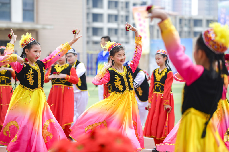 思政与体育教育的深度融合是奏响协同育人的“交响乐”。2021年11月24日,西咸新区“庆祝建党百年、喝彩全运省会”红色体育教育展示活动在沣东七校举行,本次活动激发全体师生的爱国热情,更使孩子理解了体育在铸牢中华民族共同体意识中的重要作用。学校第五届“庆百年、迎全运”体育文化节恰逢中国共产党百年华诞,第十四届全国运动会,每个班级代表一个省级行政区域,孩子们用自己独特的创意诠释祖国各地的文化特色。“畅想一带一路、勇担时代使命”第七届体育文化节,各班代表队展示“一带一路”沿线国家文化、风土人情,为孩子们打开了一扇通往世界的窗口。