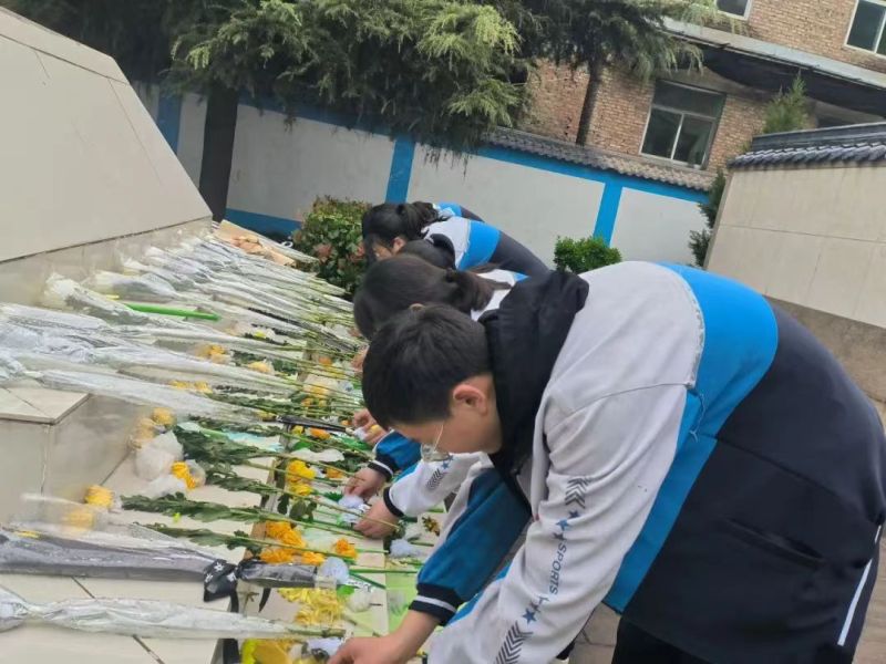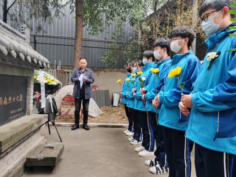 在烈士墓前,师生们整齐列队,庄严肃立,向革命烈士敬献花篮,为英烈们献上最崇高的敬意。