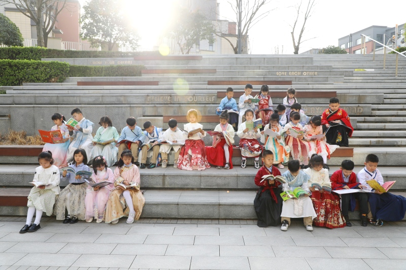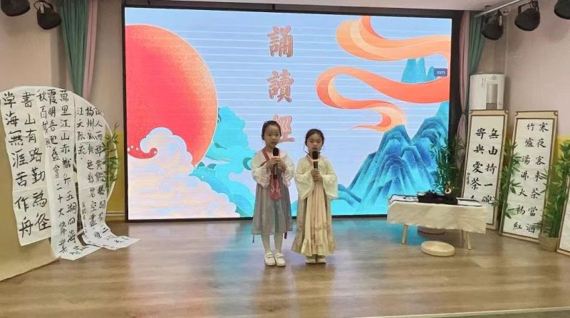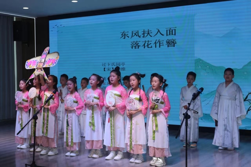 各校在经典诵读中落实全国青少年读书行动,提升语言文化素养,激发文化自信自强。