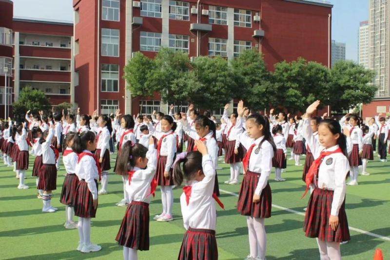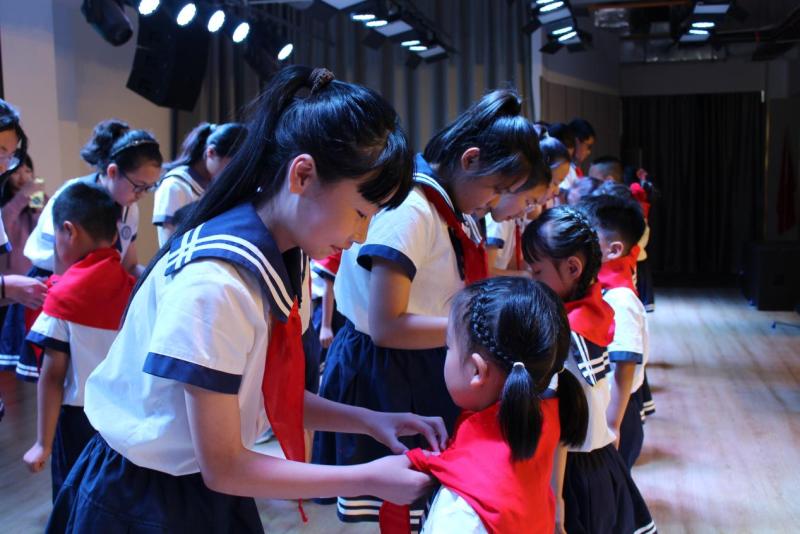队旗飘飘,融入生命和血液;星星火炬,点燃信念和理想。各学校举行一年级新队员入队仪式,火红的队旗下,高年级的优秀队员们为新队员戴上鲜艳的红领巾,这是一种传承,传递的是优良的传统,是良好的校风。