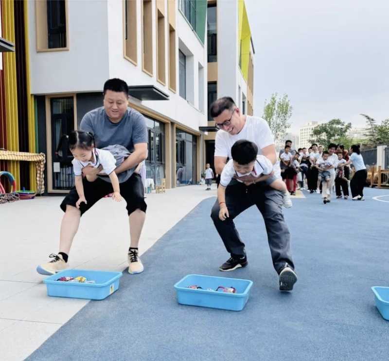 幼儿园邀请爸爸们来到园里,与孩子们一起做手工、玩游戏,尽情享受亲子时光。