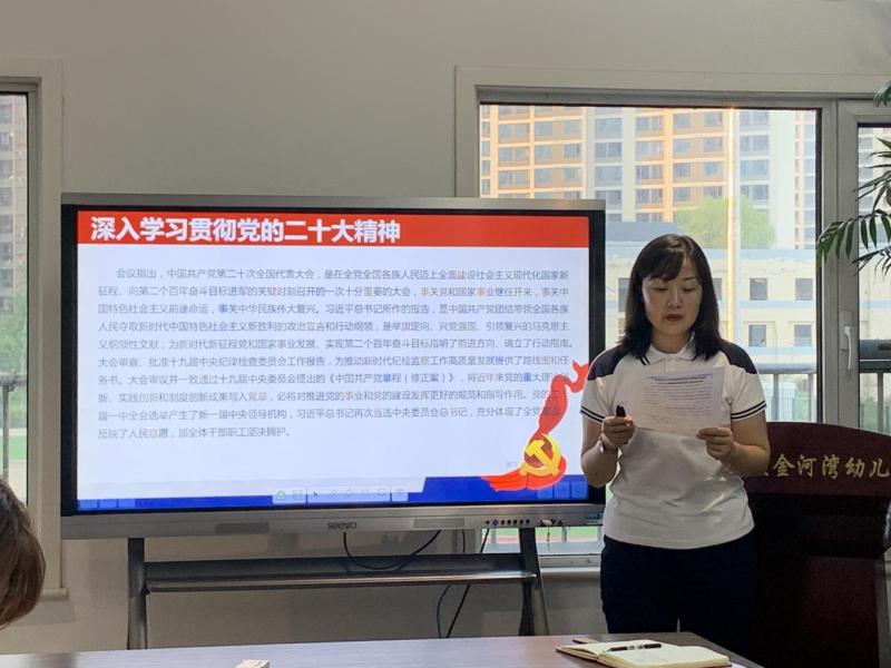 西咸新区沣东智慧堡金河湾幼儿园组织全体教职员工学习党的二十大和二十届三中全会精神、习近平总书记关于教育工作的重要论述等内容,提高教师综合素质和师德修养。