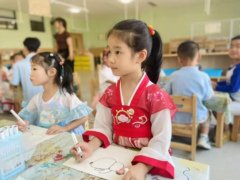 一把团扇,一支画笔,沣西沣润幼儿园孩子们身穿汉服穿越千年,在动手制作中体验民俗文化,感受中华优秀传统文化的魅力。