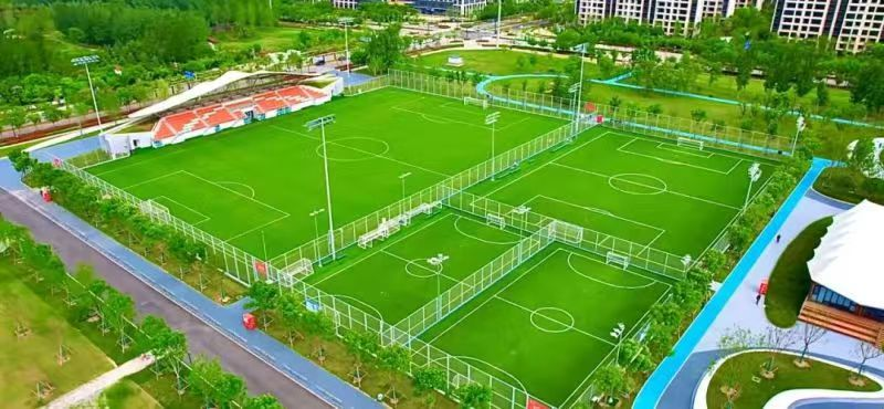 西咸新区连片足球场地主要分布在沣东新城和秦汉新城,其中沣东足球公园地处沣东新城核心片区,周边生态环境良好,包含2块11人制专业天然锚固草足球训练场和1块8人制、2块5人制人造草足球训练场,同时配备了篮球、乒乓球、羽毛球、网球等群众健身活动场地和媒体中心、能源中心等配套设施,已成为具备国际水准的专业竞技足球训练中心、青少年足球培训中心、区域社区全民健身及体育运动健康中心。