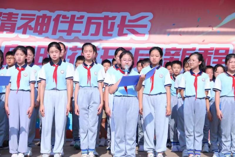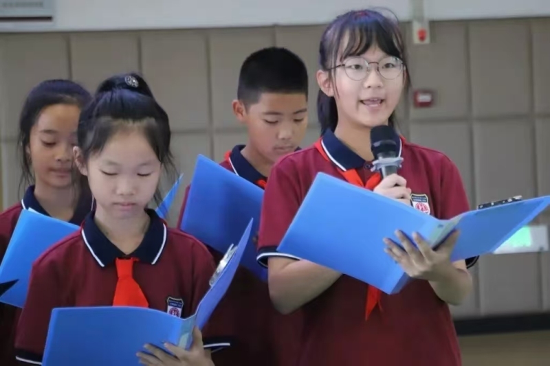 西咸新区沣东高新学校举行 “挺立民族脊梁 共筑强国梦想” 爱国主义教育主题活动。升旗仪式上,学生代表进行主题朗诵和演讲,激励大家珍惜和平、努力学习,为实现中华民族伟大复兴而不懈奋斗。
