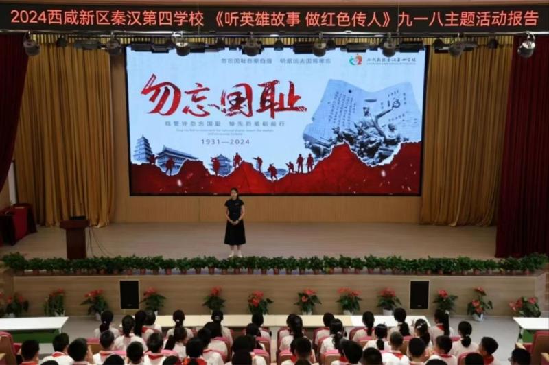 西咸新区秦汉第四学校举行 “勿忘国耻 缅怀先烈 珍爱生命 自强不息” 主题活动。师生默哀缅怀先烈,聆听事变历史并宣誓,吟唱《少年中国说》,开展手抄报评比和制作书签、观看抗战影片、演绎英雄情景等活动,以此铭记历史、自强奋进。