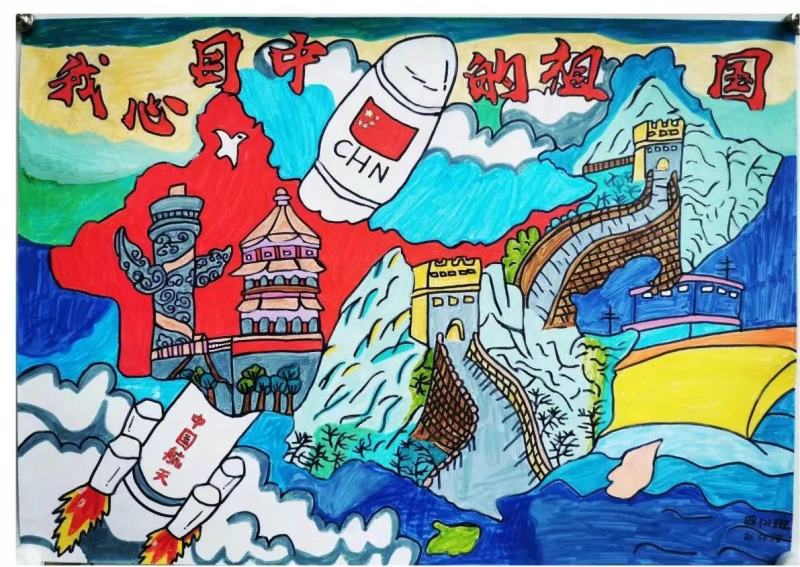 一点一线皆是爱国之情,一笔一划皆是强国之心,这一幅幅作品带来了充满灵气与创意的视觉盛宴,讴歌了新中国取得的光辉成就,表达了学生强烈的爱国情感。