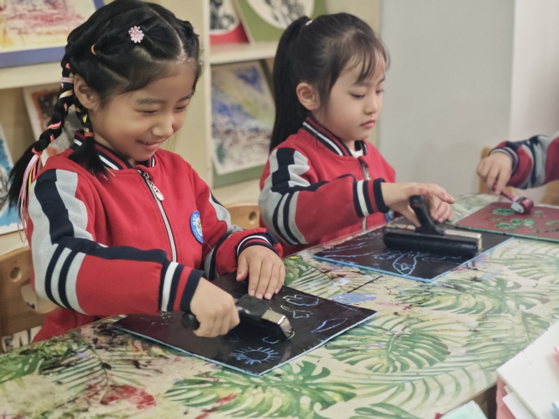 该校2019年成立少儿版画社团,拥有专业教师,通过宣传活动和课程设置激发学生兴趣。社团开设低段和高段课程,学生艺术素养提升,对中华优秀传统文化理解加深,版画成为学校特色,其开设的特色课程还培养了学生正确价值观。