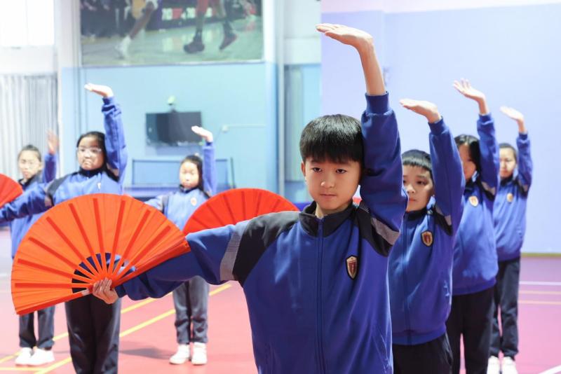 西咸新区空港第一学校将传统功夫扇融入校园体育活动。功夫扇吸取中华传统武术精华,将不同风格的武术动作融为一体,既有自然舒展的太极拳、咏春拳,也有快速有力的长拳、南拳。红色的扇子在开合间沙沙作响,形成了校园一道独特的风景,也为课间操注入了新的活力。