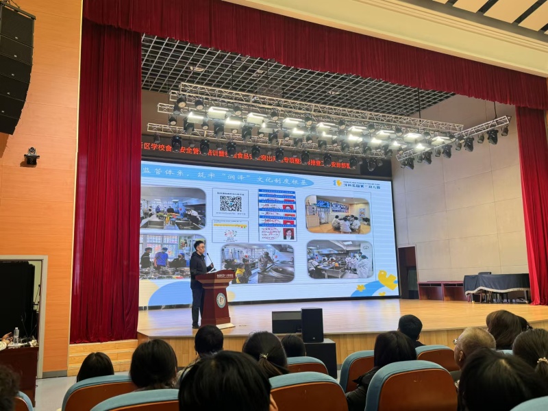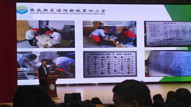 吉杰从市场监管角度对近期校园食品安全工作进行强调;朱少华老师讲解学校食堂食品安全“十统一六到位”管理模式;西咸新区空港第一学校、泾河第四小学、沣东沣科第一幼儿园先后就食品安全工作进行经验交流分享。