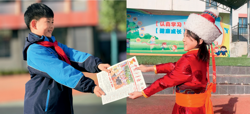 “我们收到队报啦!”11月28日,青海省海东市乐都区蒲台乡山桃村山桃中心学校的小伙伴们齐聚操场,满心欢喜地拿着报纸,隔空喊话陕西省西安市西咸新区沣东新城第八小学的小伙伴。