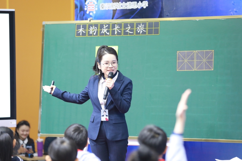 活动中展示的三年级写字课《木韵成长之旅》由李婕老师执教,课堂以“秦小万”为线索,带领着孩子们聆听“木”的故事,书写木字家族的传奇。五年级写字课《左右结构的平衡之美》由师芳芳老师执教,她结合学校的本土文化,课堂以“德”字为引,带领着孩子们了解“德”字的平衡之美,书写“立德为本 知行学思”,就学校四栋教学楼的名称“春作、夏长、秋敛、冬藏”展开讨论,分析其中左右结构的汉字书写,孩子们在分享中感悟着平衡之美,体悟着四季更替的发展规律,自然与人的循序发展。