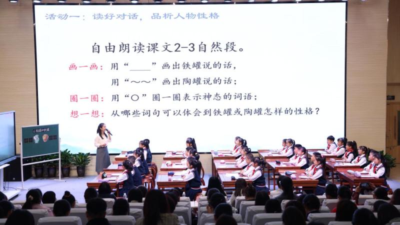 活动开始,沣东第二小学校长贺芳军致欢迎词。随后,来自沣东第二小学的王绵老师和泾河瀛洲小学的何建英老师分别带来了两节精彩纷呈的单元整体教学示范课。王绵老师的《陶罐和铁罐》,紧扣单元主题创设情境,引导学生深化文本理解;何建英老师的《一幅名扬中外的画》,融合VR/AI技术,通过学生自主合作学习提升语文素养。