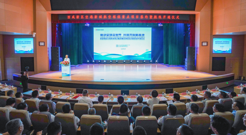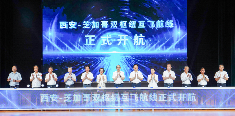 8月15日,西咸新区空港新城举行航空枢纽重点项目签约暨航线开通仪式,格鲁吉亚航空西安基地代表处、卡麦柯斯航空西安基地代表处分别揭牌,东航西安基地系列项目签约落地,西安—芝加哥双枢纽互飞航线正式开航,多重举措为陕西航空产业升级与对外开放按下“加速键”。
