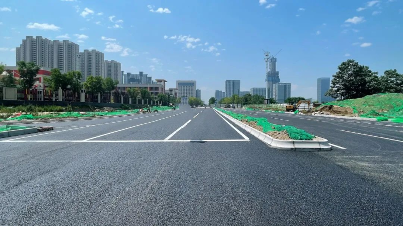 科统三路此次贯通段东起沣泾大道,西至复兴大道,全长950m,红线宽度40m,双向6车道。截至目前,沣泾大道-科源一路段第一遍沥青面层施工铺设已完成,路灯、绿化、辅道及人行道铺装工程同步完成,满足通车条件;科源一路-复兴大道段南半幅车道结构层及第一遍沥青面层施工铺设已完成,路灯、道路标识标牌及绿化等工程正在组织进场施工,南侧辅道及人行道铺装正在施工。