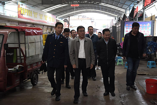 姚海军冒雨先行来到泾干街办金柳农贸市场,与猪肉销售店人员亲切交谈,逐户询问猪肉批发价格、进货渠道、销量情况,当得知受非洲猪瘟疫情影响,市场猪肉价格上涨幅度较大时,他要求加大猪肉市场价格监管力度,落实猪肉保供稳价措施,保障好居民猪肉消费,同时加强节日食品安全监管,切实保障人民群众“舌尖上的安全"。