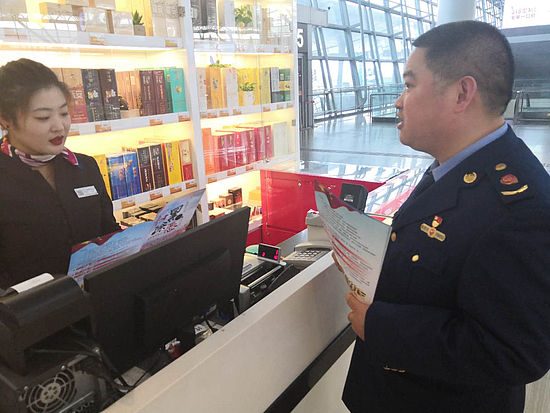 一、利用各类市场专项检查,深入机场场区、T2及T3航站楼的市场主体中开展扫黑除恶宣传教育。执法人员向经营户宣传讲解扫黑除恶斗争的重大意义、黑社会性质组织是什么?“恶势力犯罪集团”是什么等扫黑除恶专项斗争基础知识,引导经营户守法经营、诚信经营。