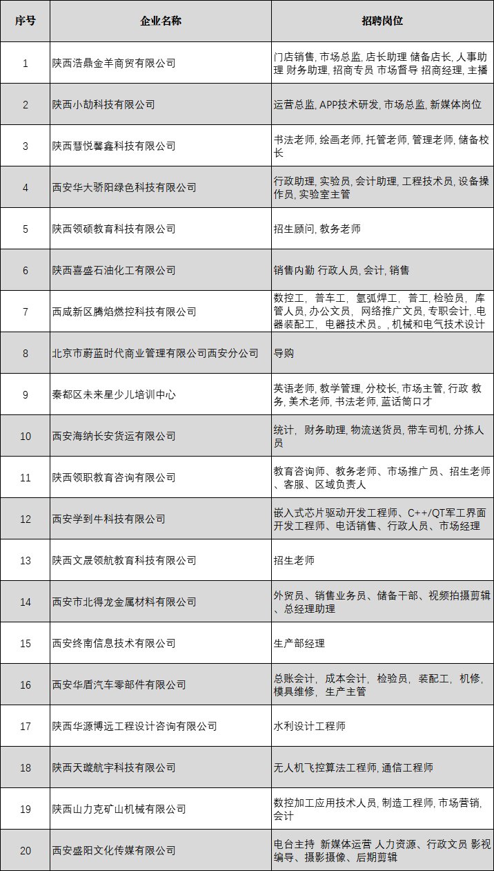 招聘企业及岗位名单