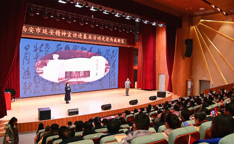 宣讲活动由中共西安市委宣传部、中共西安市委理论讲师团主办,西咸新区宣传文旅局、西咸新区教育体育局承办。这是该系列活动首次来到开发区,以“理论+文艺”的形式,用“小故事大主题”的情景体验方式,全方位阐释了延安精神,与新区干部精神思想同频共振。