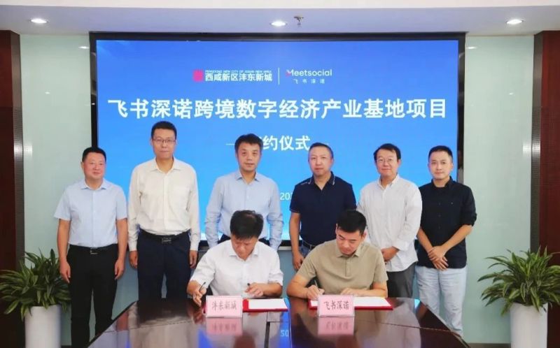 9月24日上午,沣东新城与上海飞书深诺数字科技集团(以下简称:飞书深诺集团)签署投资协议,双方将在数字经济和跨境电商产业方面开展深度合作,建设飞书深诺跨境数字经济产业基地。