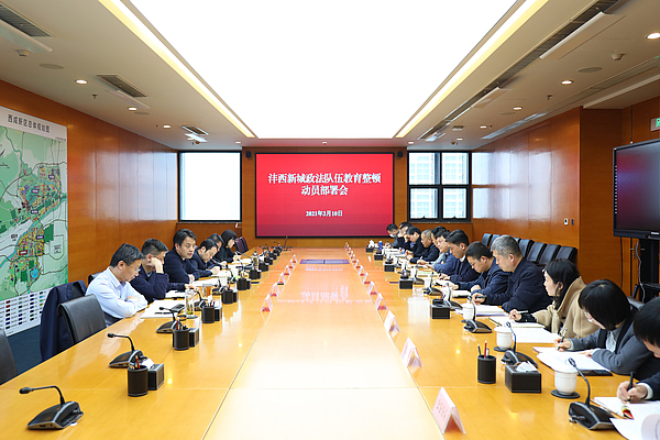 3月10日,沣西新城召开政法队伍教育整顿动员部署会议,深入学习贯彻习近平法治思想、习近平总书记关于加强政法队伍建设的重要指示和训词精神,认真学习传达全国、全省、全市和新区政法队伍教育整顿动员部署会议精神,对开展新城政法队伍教育整顿进行动员部署。沣西新城党委书记、管委会主任刘宇斌出席并讲话,沣西新城管委会副主任薄磊安排相关工作。新城全体在家班子成员参加。