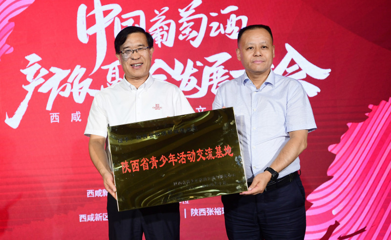 团省委青少年活动交流与服务中心授予张裕瑞那城堡酒庄“陕西省青少年活动交流基地”牌匾。