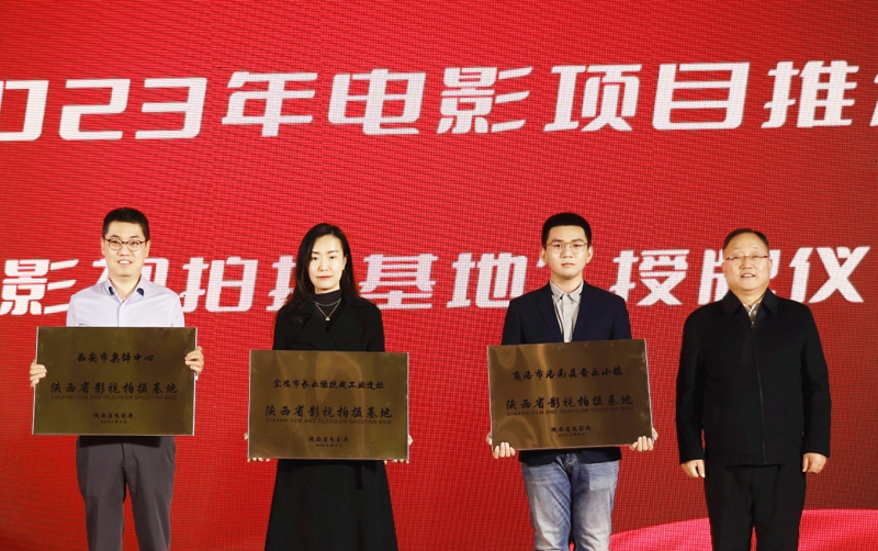 活动现场,鲍永能为西安市奥体中心、宝鸡市长乐塬抗战工业遗址、商洛市洛南县音乐小镇3个省级影视拍摄基地授牌。
