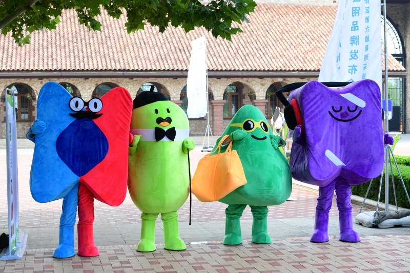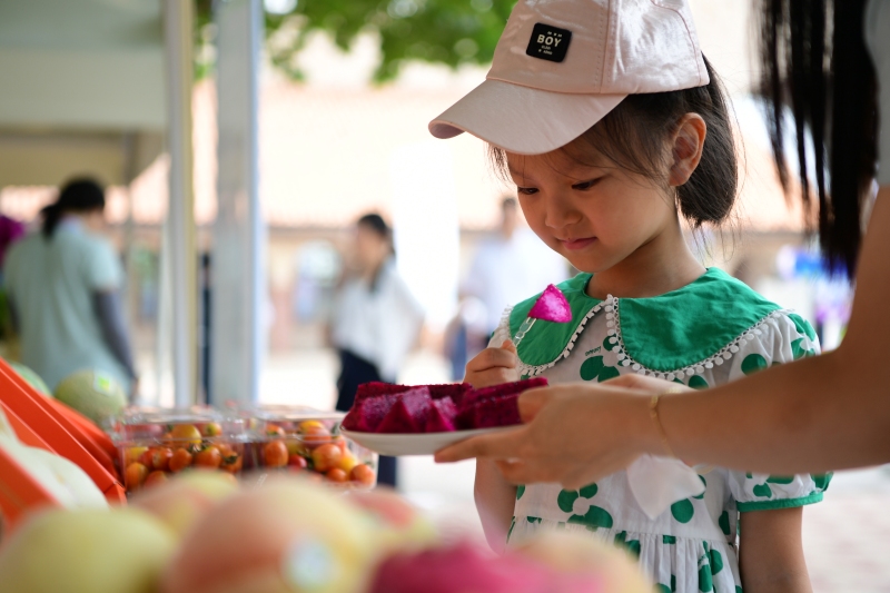 在启动仪式举办地张裕瑞那城堡酒庄葡萄园区,成排的葡萄架上,一串串饱满的葡萄缀满枝头,令人垂涎欲滴。会场一侧,火焰无核、黑密、阳光玫瑰等葡萄晶莹剔透,水蜜桃、七彩鸡蛋、赤松茸酱、擀面皮,茯茶、花卉等一系列特色农产品让人大饱眼福,纷纷驻足围观。