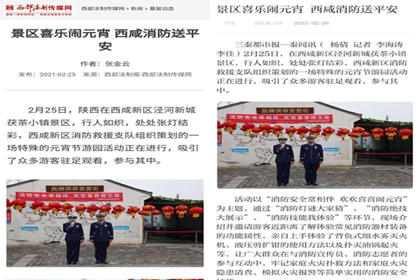 2月27日,中央13套《午夜新闻》、陕西电视台《第一新闻》、央视频客户端等中央、省级主流媒体报道了西咸新区消防救援支队元宵节消防宣传活动。