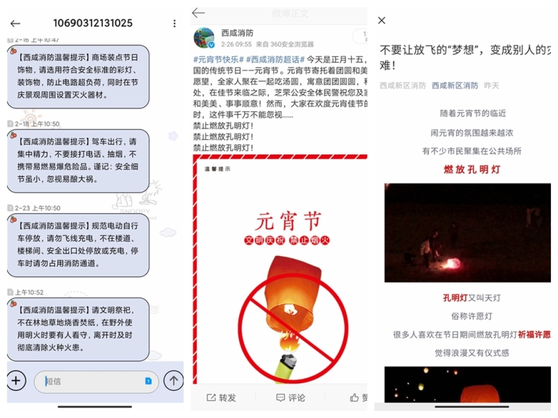 为提高群众消防安全意识和防火自救能力,营造喜庆祥和的节日氛围,连日来,西咸新区消防救援支队积极创新举措,开展了形式多样的元宵节消防安全宣传活动,将消防安全知识送进了旅游景区、养老院、社区、家庭,助力节日期间全区消防安全形势稳定。