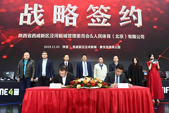 11月1日,西咸新区泾河新城与人民体育(北京)有限公司、北京优时光网络科技有限公司在静安荟奥莱公园签署电竞产业战略合作协议。同时,为期3天的人民电竞超级联赛(PPL)西安站暨FIFA OLINE4职业冠军杯(FCC)也在泾河新城静安荟奥莱公园拉开战幕。