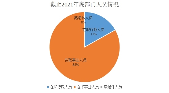 截止2021年底,本部门人员编制101人,其中行政编制26人、事业编制75人;实有人员178人,其中行政30人、事业148人。单位管理的离退休人员0人。