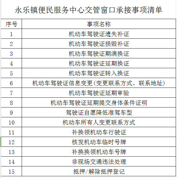 为进一步落实政务服务事项“应进必进”,满足辖区群众就近办事需求,即日起,交管窗口正式入驻永乐镇便民服务中心!便民服务中心作为政府服务群众的前沿阵地,此次与交管部门的合作,是积极落实“高效办成一件事”“最多跑一次”的创新举措,为群众提供了更加便捷、高效的办事渠道。